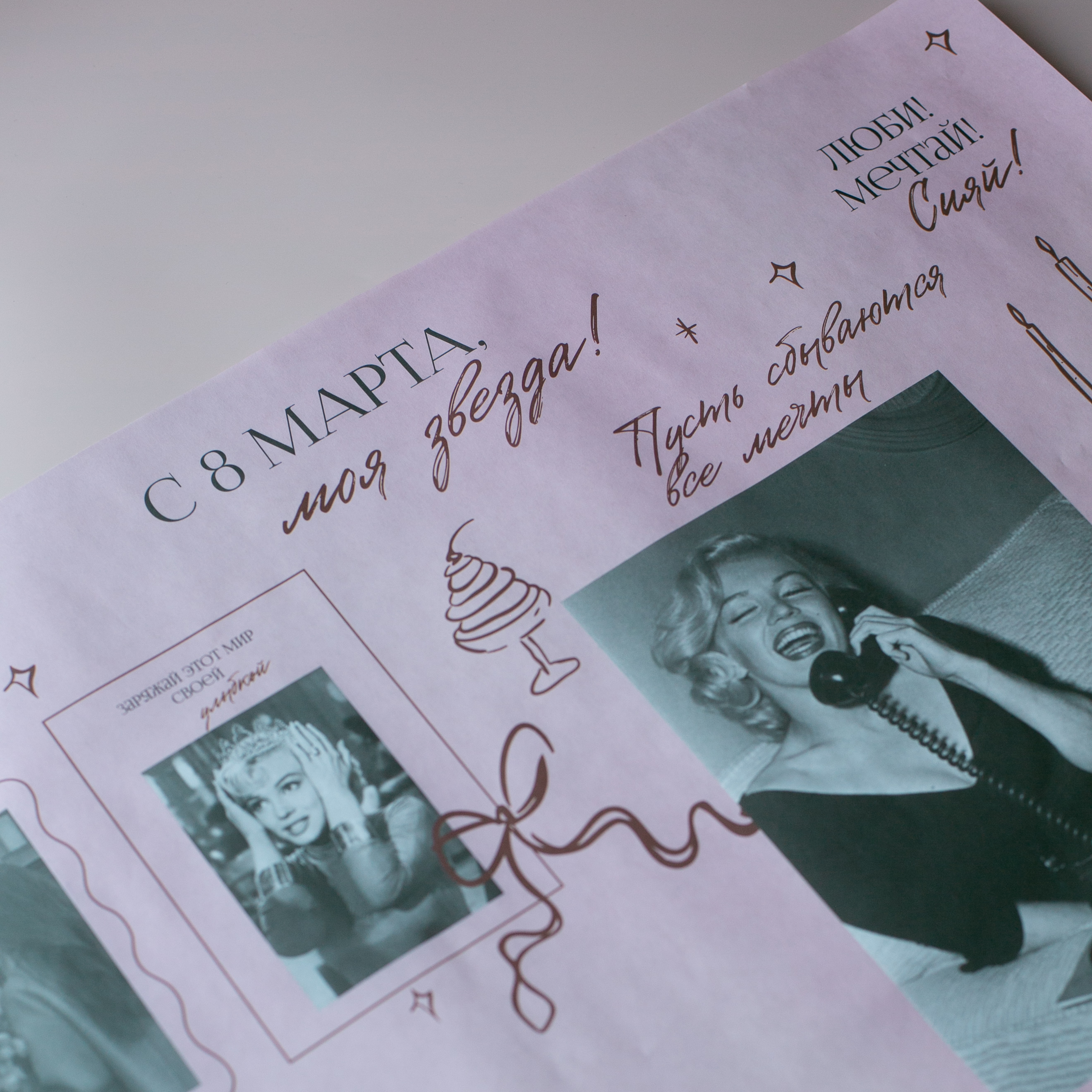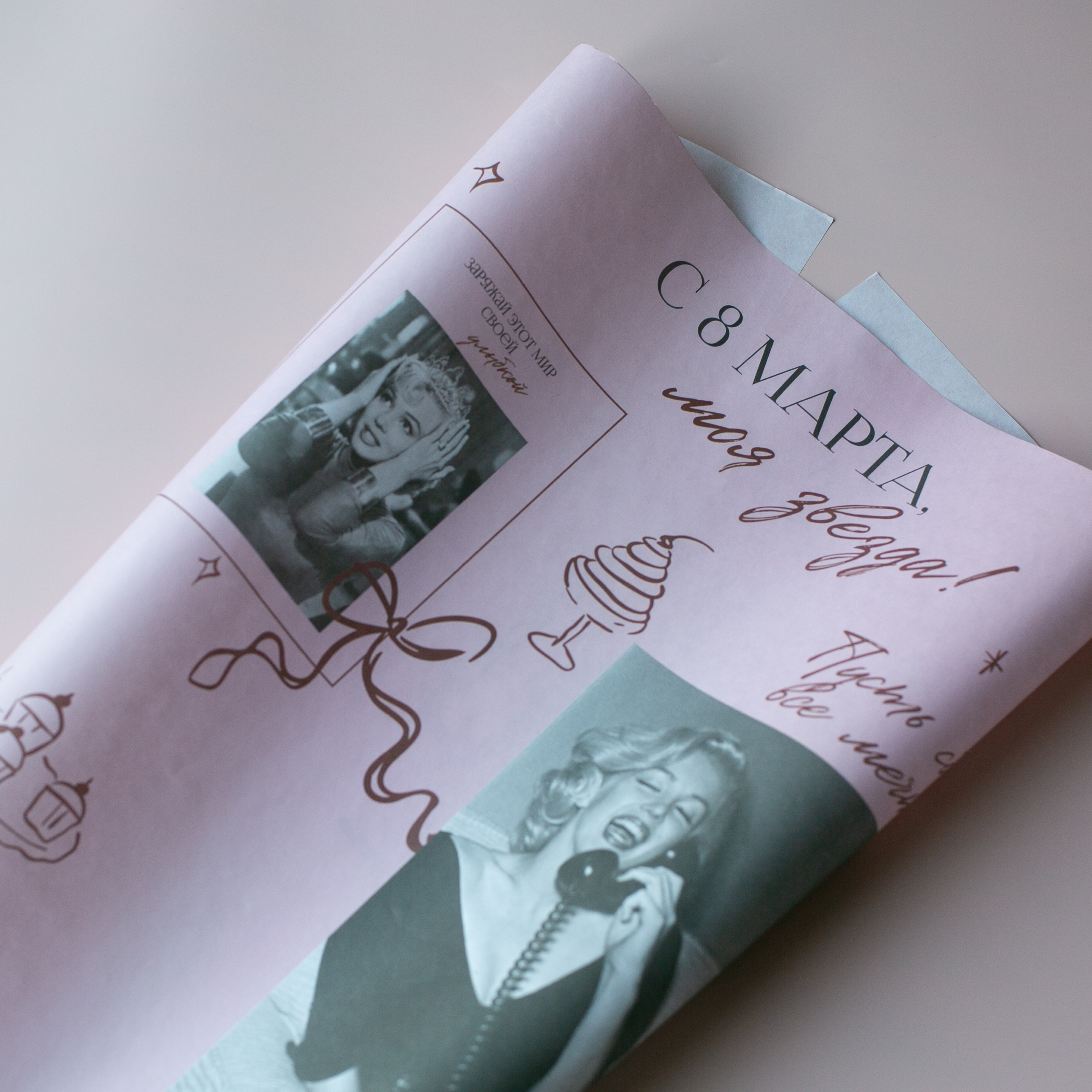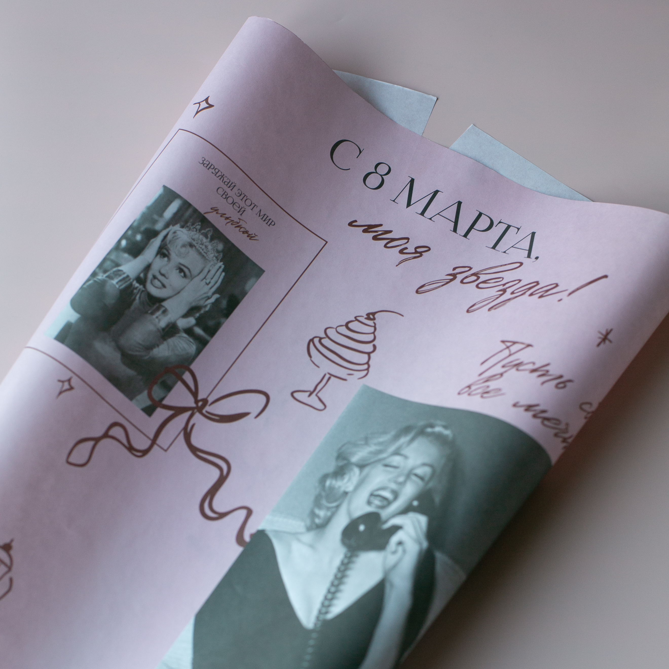 Бум-37 бумага (45х64 см) С 8 Марта, моя звезда! (цена за упаковку 20 листов)